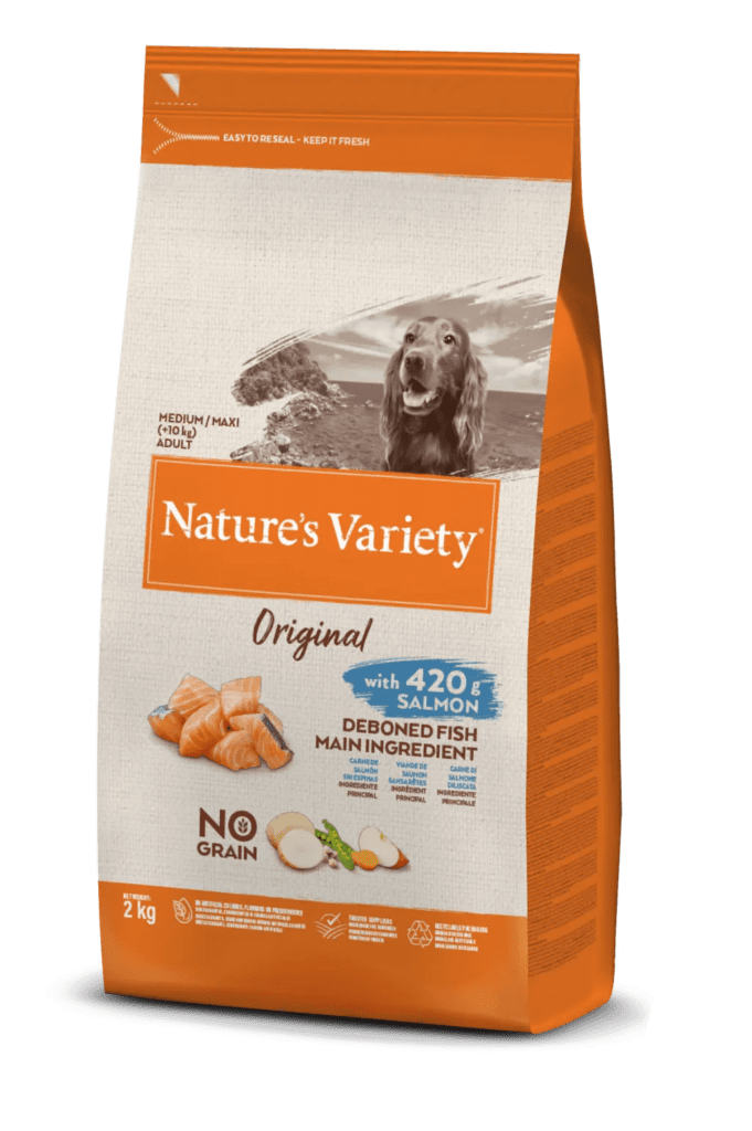 Natures Variety es otro de los 3 Mejores piensos naturales para perros en España gracias a su enfoque en la alimentación ancestral y natural de los perros. Sus fórmulas contienen ingredientes de alta calidad, como carnes frescas y vegetales, evitando aditivos y subproductos. Además, ofrecen una amplia variedad de opciones para diferentes necesidades y etapas de vida. Natures Variety promueve la salud digestiva con ingredientes probióticos y prebióticos, y también incorpora ácidos grasos esenciales para una piel y pelaje saludables.