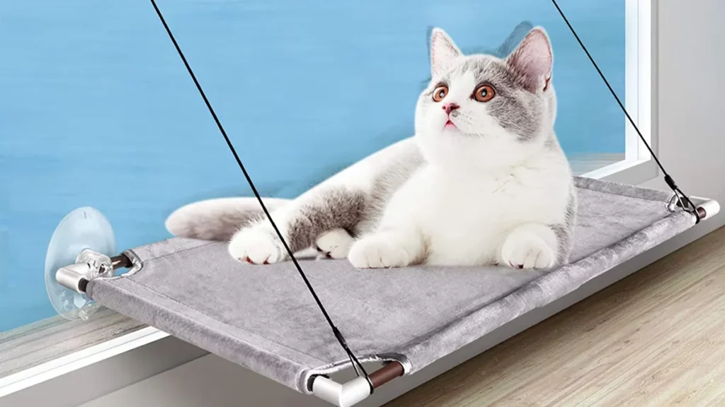 La cama PUEIKAI es una de las 3 mejores camas para gatos en España gracias a su resistente estructura de varilla de fibra de vidrio y cables de acero, que brindan una capacidad de carga de hasta 50 libras. Sus ventosas poderosas, tanto de perilla como de empuje, aseguran una sujeción firme en diversas superficies. Con dimensiones generosas y fácil instalación en puertas y ventanas de vidrio, esta hamaca proporciona un amplio espacio para que los gatos disfruten del sol y las vistas exteriores. Su almohadilla de doble cara, con tejido transpirable y terciopelo suave, se adapta a diferentes estaciones, y puede lavarse tanto a máquina como a mano.